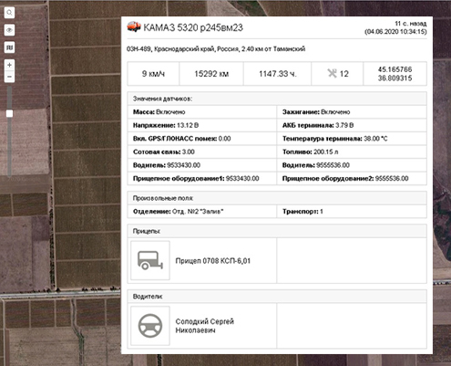 Использование спутникового мониторинга сельхозтехники оптимизировало её эксплуатацию и расход внесения материалов при выполнении сельскохозяйственных операций. Возможность определять факт нахождения техники в поле, видеть расчёт обработанной сельхозтехникой площади позволил увеличить время её работы, снизить потери и контролировать дальнейшее развитие ситуации, тем самым оптимизируя управление. Сегодня к системе спутникового мониторинга подключено более 400 движущихся и стационарных объектов.